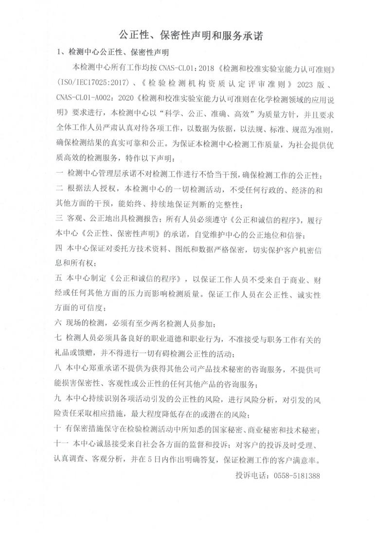 檢測(cè)中心公正性、保密性聲明和服務(wù)承諾